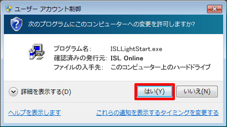 ユーザーアカウント制御で、「はい(Y)」をクリック